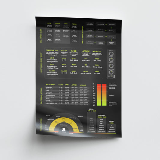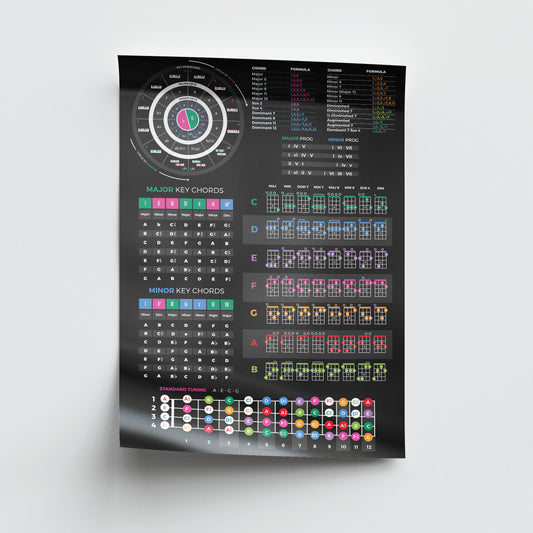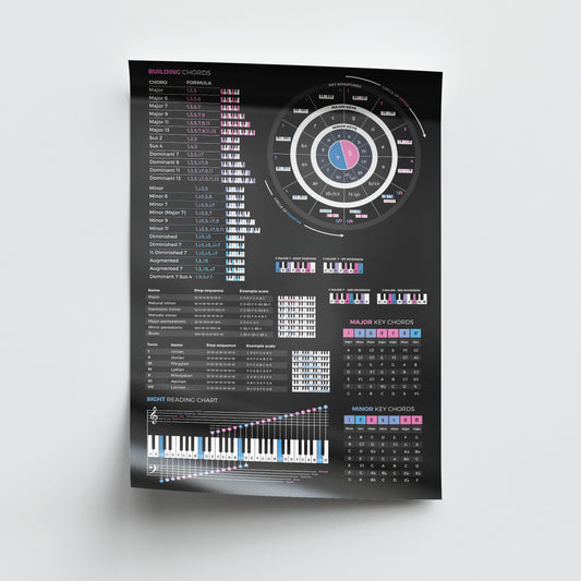 Embark on a journey to master music theory, mixing/mastering or your DAW with our captivating range of educational posters. Whether you're a novice or a seasoned musician, our poster collection is designed to be your trusted guide. Dive deep into the intricacies of chords and scales with our comprehensive piano chord/scale posters, allowing you to grasp these fundamental elements with ease. For a more profound understanding of music theory, explore our music theory posters, which break down complex concepts into digestible visuals. With these enlightening resources gracing your studio or practice space, you'll not only elevate your comprehension of music theory but also empower yourself to reach new heights in your musical pursuits.