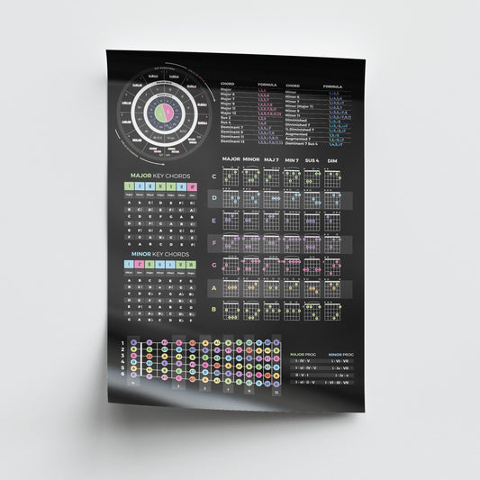 Póster de chuleta de teoría de la guitarra