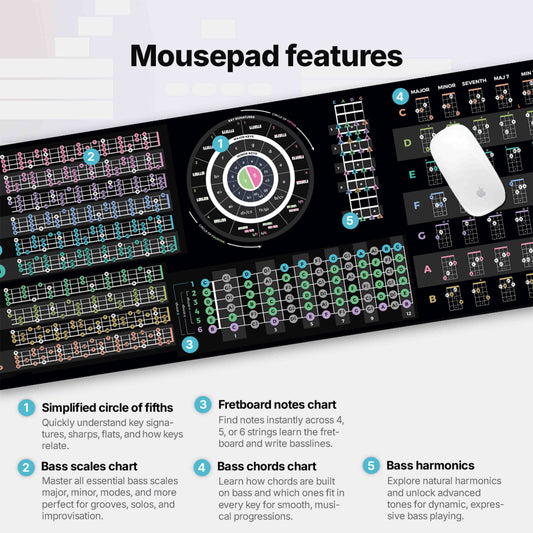 Alfombrilla de ratón con hoja de trucos de teoría de bajo eléctrico