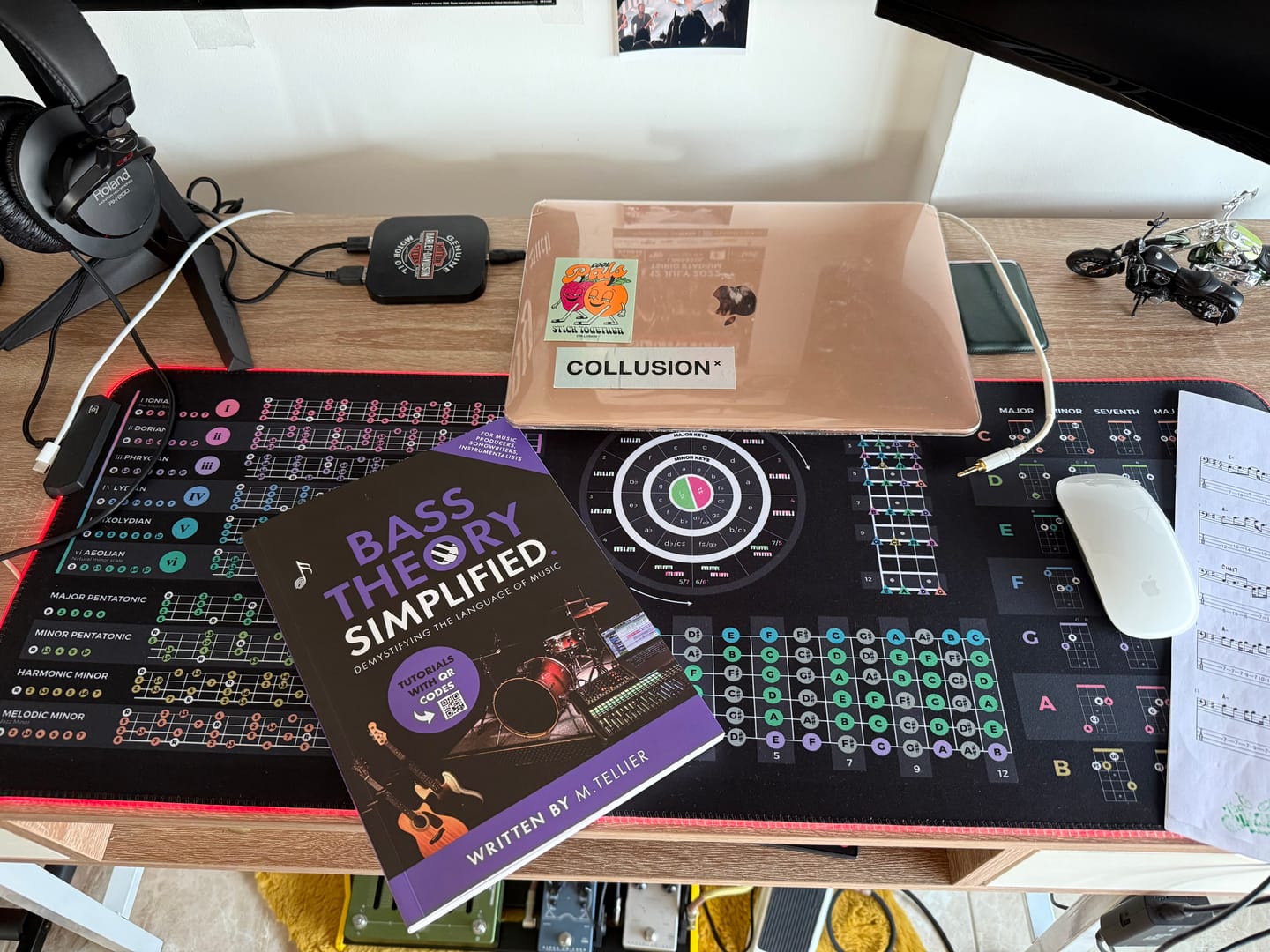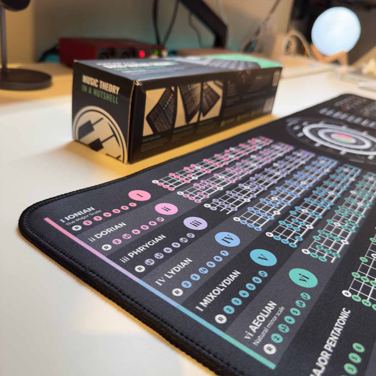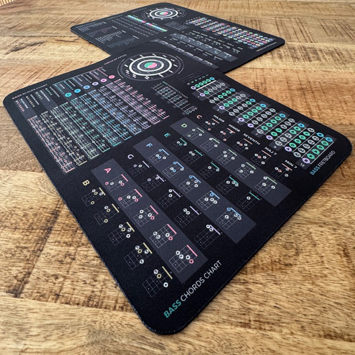 This mousepad covers all the core concepts you need to build better basslines. From mastering fretboard notes and scale systems to understanding key signatures and building chords — everything’s right at your fingertips.