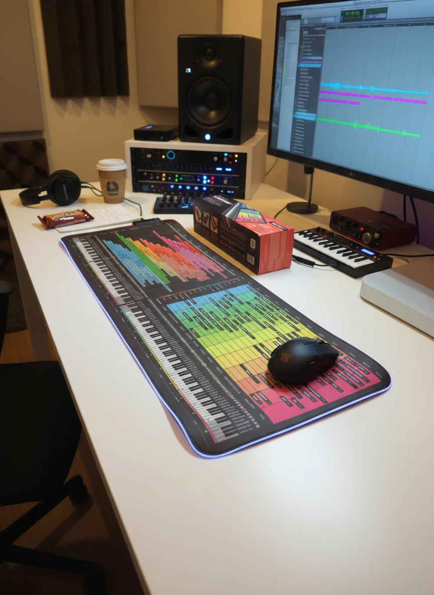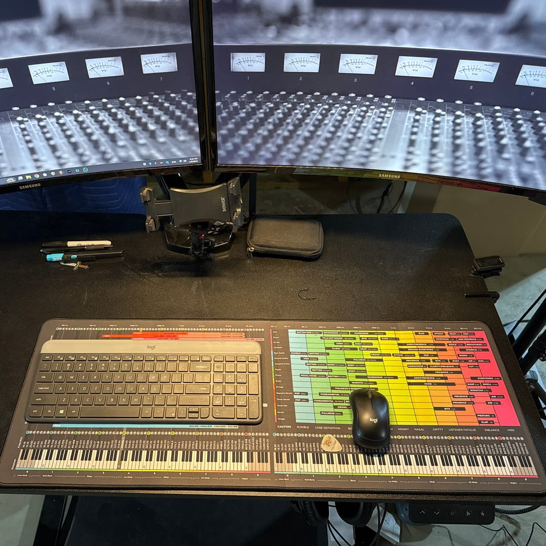This mousepad breaks down the entire frequency spectrum into clear instrument ranges, boost/cut zones, and mixing tips — so you can confidently create clean, balanced, professional-sounding mixes. No stress, no endless guessing — just results you can hear.