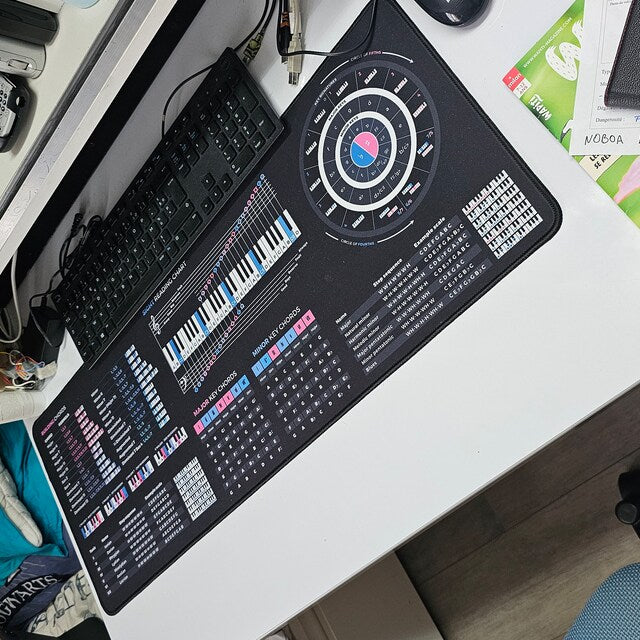 This mousepad breaks it all down into clear visuals, useful reference points, and real musical patterns — so you can play and create confidently without stopping to look things up. and No guesswork, no frustration — just progress you can hear.